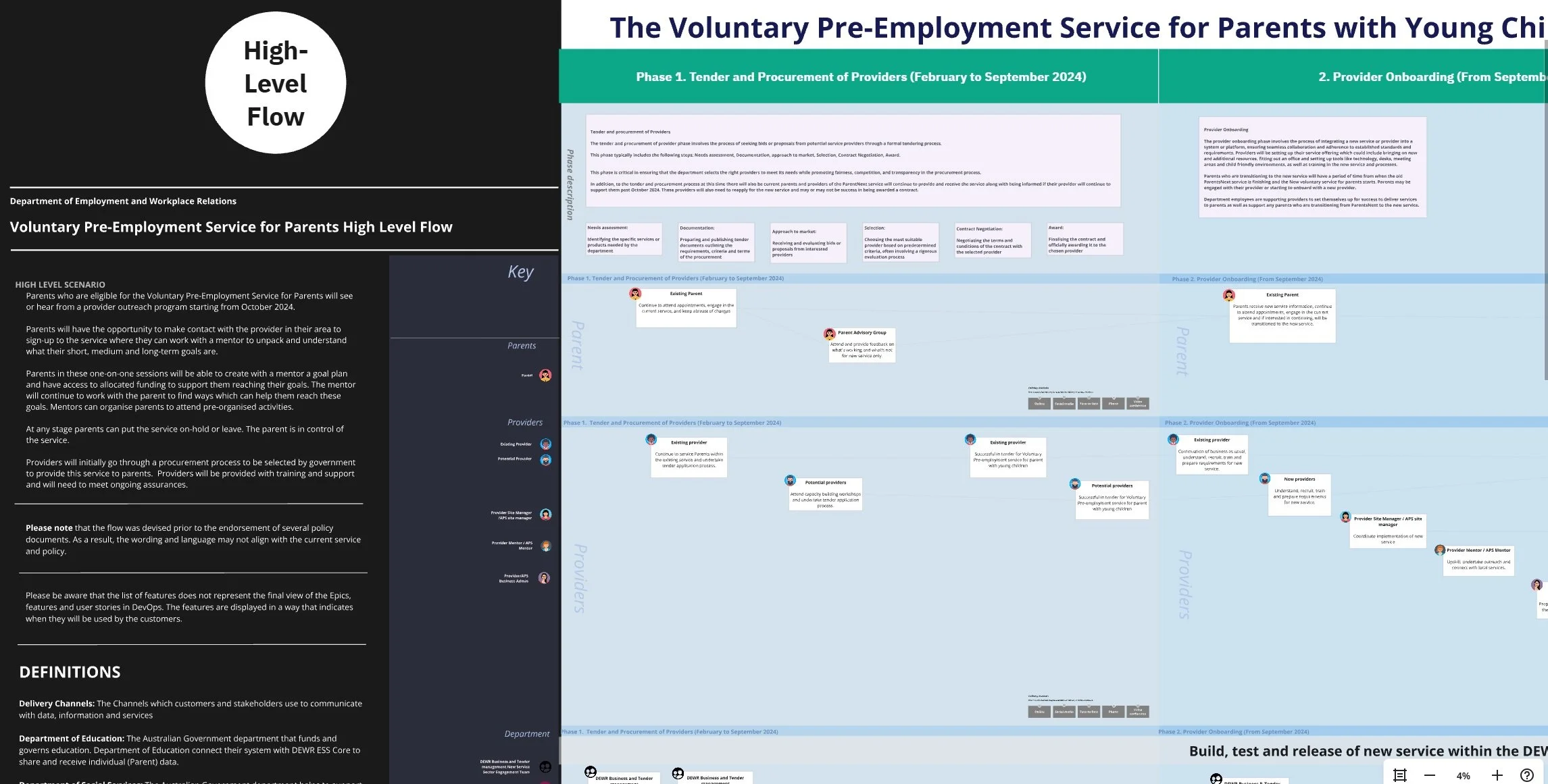 This was a complex and high stakes initiative that replaced the former ParentsNext program, introducing a new policy direction, customer focus, and delivery model. New providers were onboarded, and the service was built on the Workforce Australia digital platform, requiring a redesign of journeys from referral through to payments.
