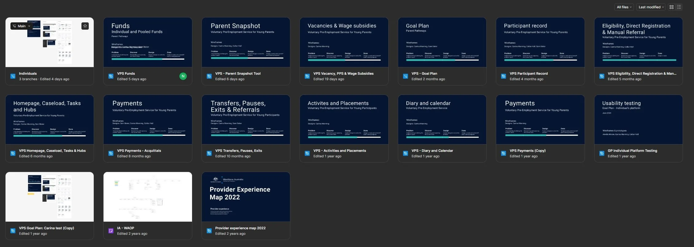 Figma files for the Parent Pathways services. Showing the complexities of the service for parents and providers